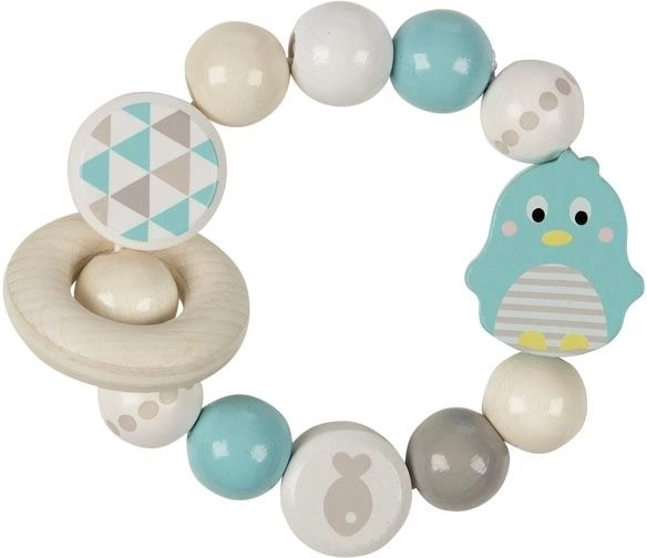 Objavte kvalitnú drevenú hrkálku HEIMESS z radu Lifestyle – pružný farebný krúžok s korálikmi, krúžkom a malým tučniakom, ktorý deti láka k držaniu a skúmaniu. Vďaka jemným pastelovým farbám a harmonickému dizajnu je hrkálka atraktívna a zároveň upokojujúca.