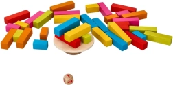 36 pevných drevených blokov v jasných farbách a drevená kocka, ktorá určuje farbu ďalšieho ťahu pre férovú a zábavnú hru.