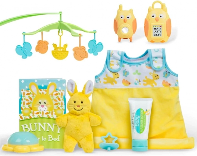 Súprava na uspávanie bábik a plyšákov je dokonalým doplnkom pre deti, ktoré milujú hranie rolí a starostlivosť o svoje hračky. Obsahuje rôzne prvky, ktoré pomáhajú rozvíjať detskú predstavivosť a jemné motorické zručnosti.