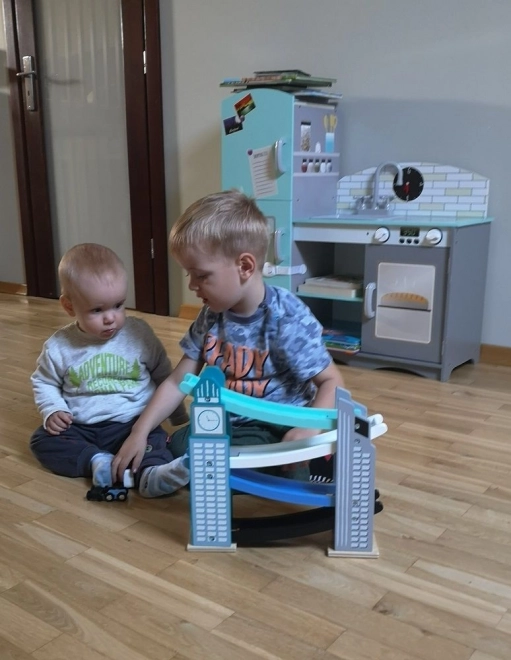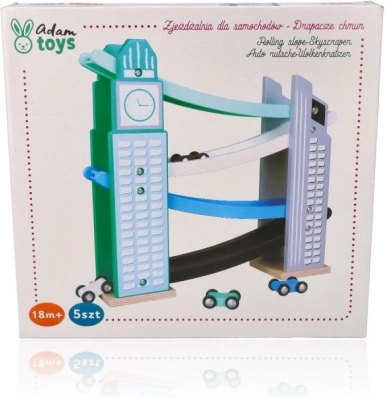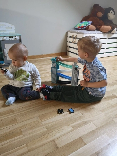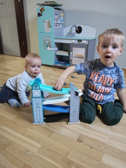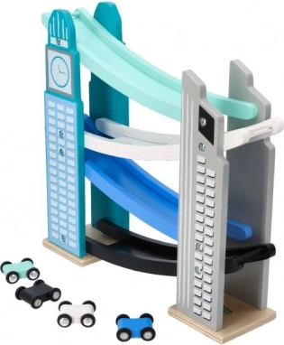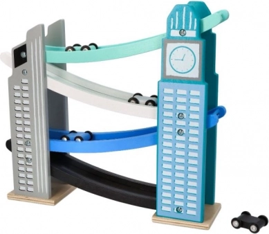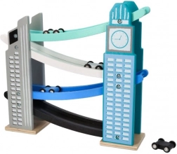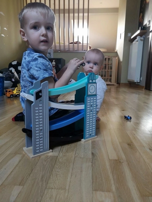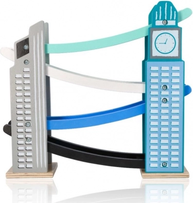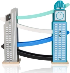Naša drevená autodráha je navrhnutá tak, aby vyzerala ako ikonické mestské stavby, vrátane veže s hodinami. Je vyrobená z kvalitného dreva a ponúka niekoľko úrovní s rôznofarebnými rampami v modrej, čiernej a bielej farbe. Deti sa budú baviť pri púšťaní malých farebných autíčok z vrcholu až nadol. Dráha nielen poskytuje zábavu, ale tiež rozvíja jemnú motoriku a učí o fyzikálnych princípoch, ako je gravitácia a rýchlosť.