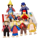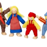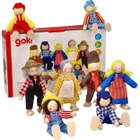 GOKI Rodinka farmárska II ponúka originálne drevené bábky s látkovými oblečeniami. Tieto bábky majú pohyblivé nohy a ruky, čo umožňuje ich rôznorodé polohovanie.