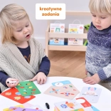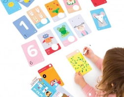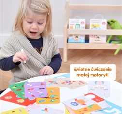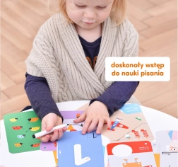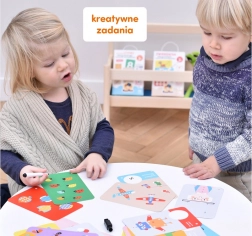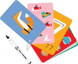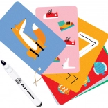 Súprava zahŕňa farebné ilustrácie plné humoru, ktoré inšpirujú deti k tvorivým aktivitám. Karty umožňujú opakované kreslenie a mazanie, čo je skvelý edukačný darček pre deti v predškolskom veku. Ideálna aj na cesty s dieťaťom.