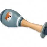 Roztomilá modrá drevená rumba guľa s motívom líšky je ideálna ako prvá hudobná hračka pre bábätká od 5 mesiacov. Podporuje rozvoj sluchu, jemnej motoriky a citu pre rytmus, má ergonomický tvar, hladký povrch a bezpečné materiály s certifikáciou CE.