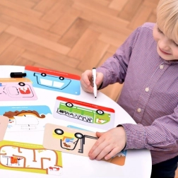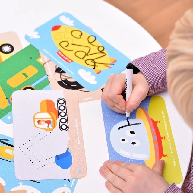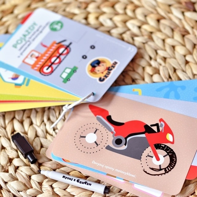 Set CzuCzu Vozidlá prináša deťom množstvo chytrých aktivít s motívmi rôznych dopravných prostriedkov. Knižka na šnúrke je plná pestrých ilustrácií a úloh, ktoré možno vďaka stierateľnej fixke plniť znova a znova. Praktické balenie s uchom sa skvele hodí na doma, na návštevy aj do auta.