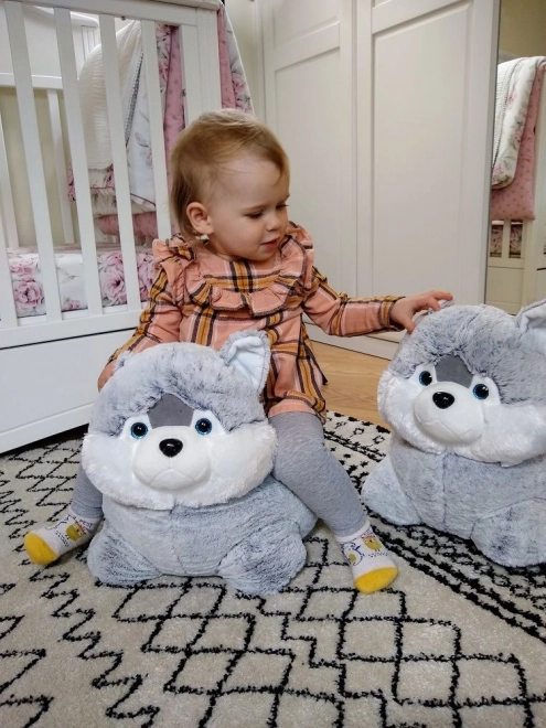 Prinesiete do detskej izby kúsok pohodlia a zábavy s týmto plyšovým vankúšikom v tvare huskyho, ktorý slúži ako pohodlné sedenie aj dekoratívny prvok.