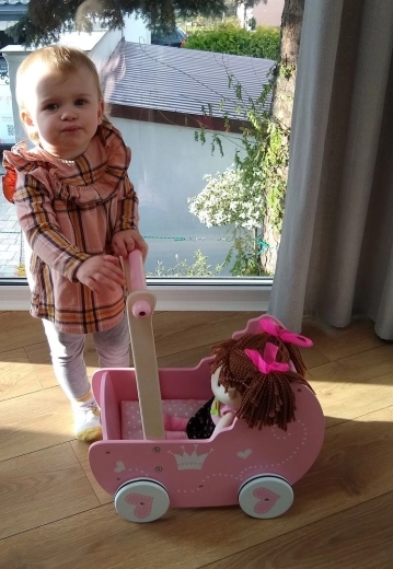 Bábika je skvelá nielen na hru, ale aj ako dekoratívny prvok v detskej izbičke. Jej pôvabná kombinácia farieb a vzorov okamžite upútajú pozornosť.
