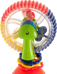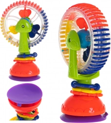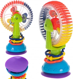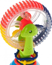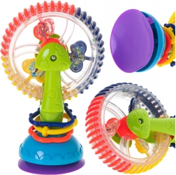 Táto interaktívna hračka pre bábätká ponúka rotujúce prvky, guličky s hrkálkovým efektom a silnú prísavku, ktorá ju udrží na mieste. Veselé farby a točiace sa časti priťahujú pozornosť a podporujú sústredenie aj koordináciu oko–ruka.