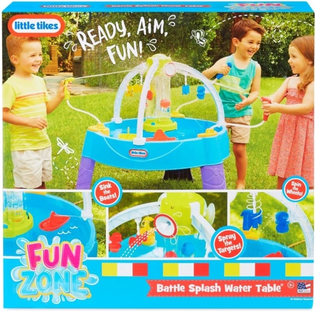 Vodný hrací stôl ponúka nekonečnú zábavu počas teplých letných dní. Deti môžu mieriť na ciele, napĺňať valce vodou alebo potápať lode svojich protivníkov.