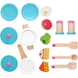 Hrniec, panvica, pokrievka, naberačka, soľnička, korenička a ďalšie drobnosti dodajú hre na varenie realistickosť a variabilitu. Všetko je prispôsobené detským rukám.