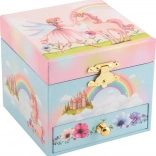 Pôvabná hracia šperkovnica v dúhovom dizajne poteší malé parádnice. Po otvorení zaznie jemná melódia Labutie jazero a malá baletka sa roztancuje pred zrkadlom. Rozmery 11 × 11,1 × 10 cm. Dekoračný predmet, nie je hračka.