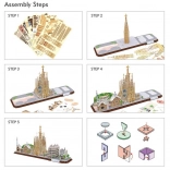 Puzzle 3D City Line Barcelona sú vzrušujúcou zábavou pre deti aj dospelých. Cityline je jedinečná rada od výrobcu Cubic Fun, ktorá zobrazuje panorámu konkrétneho mesta spolu s jeho najcharakteristickejšími pamiatkami. Balenie obsahuje 186 dielikov zo špeciálneho penového materiálu. Puzzle sú očíslované, vyrezané a umiestnené na archy. Stačí bez použitia sily vytlačiť diel z archu a zostaviť ho podľa priloženého návodu, bez použitia lepidla alebo špeciálnych nástrojov.