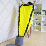 Vďaka komfortným lanovým madlám kôš ľahko prenesiete z izby do izby, na terasu aj na piknik. Neutrálne sivý kôš a žlto‑čierna podložka zapadnú do každého interiéru.