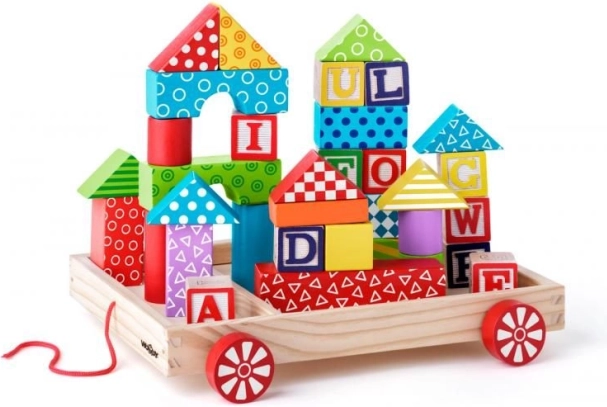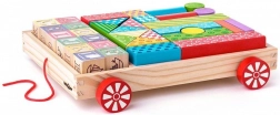 Drevený ťahací vozík s 35 farebnými kockami poteší malých staviteľov aj zvedavých objaviteľov. Deti môžu vozík ťahať po izbe, stavať veže a učiť sa spoznávať farby, tvary aj písmená. Hračka rozvíja koordináciu oko–ruka, logické myslenie a trpezlivosť, zároveň je bezpečná a odolná.
