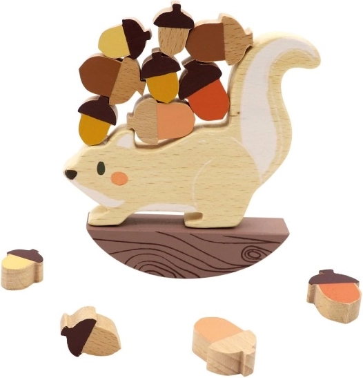 Rozjaraná veverička sa chystá na zimu – unesie všetky žalude? Striedajte sa so súperom a ukladajte dieliky tak, aby sa veverička na vratkej podstave neprevažovala. Jednoduché pravidlá a napätie v každom ťahu robia z tejto drevenej balančnej hry skvelú voľbu pre deti od 3 rokov.