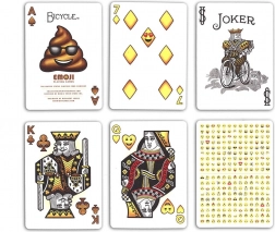 Karty Emoji od renomovaného výrobcu Bicycle prinášajú do tradičných kartových hier zábavný a originálny prvok. Každá karta je zdobená populárnymi emotikonmi, čo dodáva hre nový rozmer a zaručuje úsmevy na tvárach hráčov.