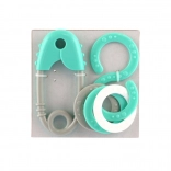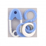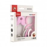 Roztomilá chrastiaca sada pre najmenších v pastelových farbách kombinuje tvar špendlíka a osmičky. Podporuje rozvoj zmyslov, trénuje úchopový reflex a je vyrobená bez ostrých hrán a malých uvoľniteľných častí.