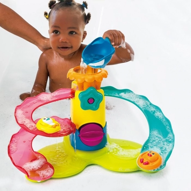 Tento farebný akvapark s dvoma tobogánmi prináša veľa zábavy a radosti do každej kúpeľa.