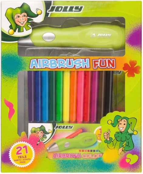 Airbrush pero JOLLY premení každý papier, kartón či textil na originálne dielo. Vďaka elektrickému rozprašovaniu farby dosiahnete plynulé prechody, tieňovanie aj presné línie bez námahy. Zábavné šablóny s písmenami, číslami a motívmi uľahčia začiatky a podporia detskú fantáziu.