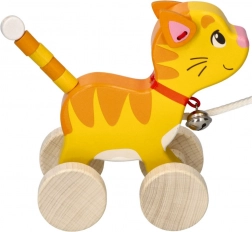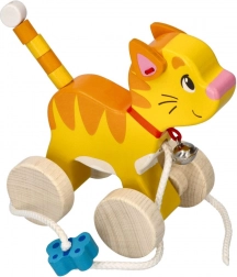 Táto roztomilá drevená ťahacia mačička je ideálnou hračkou pre podporu motorického vývoja a rozvoj rovnováhy u malých detí. Je vybavená rolničkou, ktorá pri pohybe jemne cinká, čo dodáva na atraktivite hračky.