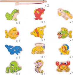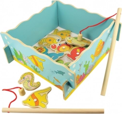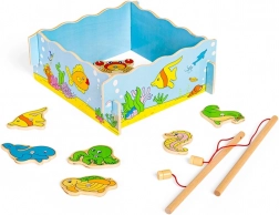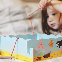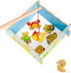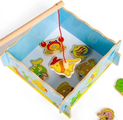 Chyťte prút a vydajte sa na lov do podmorského sveta! Táto drevená hra s magnetmi prináša zábavu aj učenie v jednom – deti trénujú jemnú motoriku, koordináciu oko–ruka a trpezlivosť. Set obsahuje 12 morských tvorov, 2 prúty a pevnú drevenú krabičku v tvare akvária. Ideálna hračka pre deti od 3 rokov z kvalitného dreva s bezpečnými farbami.