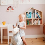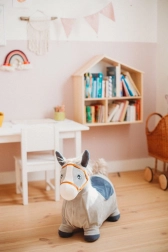 Príjemne mäkký povrch a stabilný tvar skákacieho oslíka láka k hraniu a zároveň pomáha deťom udržať rovnováhu. Pohodlná výška sedla 28 cm uľahčuje nasadanie.