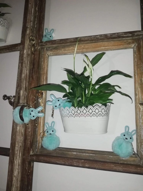 Závesná dekorácia králik s bambuľkou prináša jemný a hravý detail do vášho domova. Hebká bambuľka vytvára príjemný hmatový aj vizuálny efekt, zatiaľ čo motív králika pôsobí nadčasovo roztomilo.