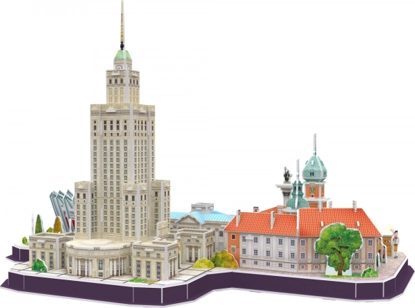 3D puzzle CityLine panorama Varšava prináša autentickú atmosféru poľského hlavného mesta v kompaktnom a elegantnom prevedení. Vďaka špeciálnemu materiálu – asi 3 mm hrubej pene potiahnutej laminovaným potlačeným papierom – je model pevný, detailný a vizuálne atraktívny. Zostavenie prebieha jednoducho a čisto: bez lepidla a bez nožníc, iba podľa prehľadného návodu.