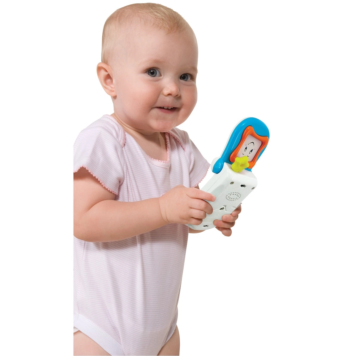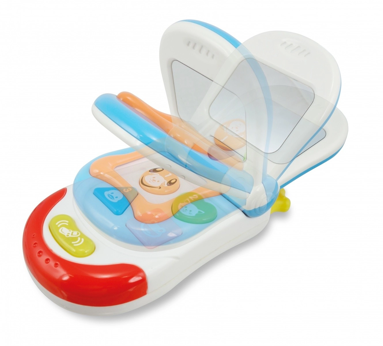 Telefón má praktické pútko na jednoduché zavesenie na postieľku alebo do kočíka. Anténka slúži ako hryzátko, ktoré uľaví ďasnám pri prerezávaní zúbkov. Deti si užijú stláčanie tlačidiel a otváranie klapky, čím prirodzene trénujú jemnú motoriku a koordináciu oko–ruka.