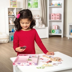 Obliekajte Ninu do pôvabných baletných kostýmov a doplnkov a vymýšľajte si vlastné príbehy zo sveta tanca. Magnetické dieliky sa ľahko prikladajú a držia, takže sa deti môžu hrať znova a znova bez straty dielikov a frustrácie.