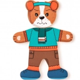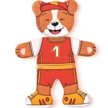 Obliekanie psíka motivuje deti k jemnej manipulácii s dielikmi a podporuje rozvoj motoriky aj koordinácie oko–ruka už od 1 roka.