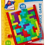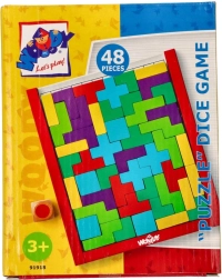 Skladačka obsahuje hernú kocku, ktorá pridáva prvky náhody a hry, čo robí každý herný zážitok jedinečným.