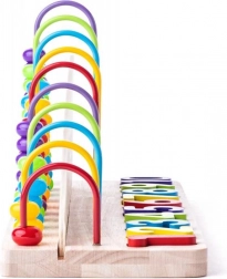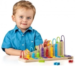 Manipulácia s farebnými korálkami a priraďovanie kúskov k základni je skvelým cvičením pre malé prsty a podporou rozvoja logického myslenia. Všetky použité materiály sú netoxické a bezpečné, a vďaka zaobleným hranám poskytujú deťom dodatočnú ochranu pri hre.