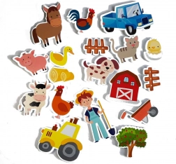 Roztomilé zvieratká, traktor aj stodola pre nekonečné príbehy počas kúpeľa. Dieliky sú ľahké, mäkké a šetrné k detským rúčkam.