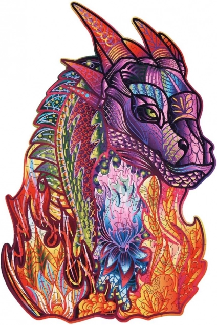 Toto drevené puzzle s motívom draka vyniká výraznými farbami a unikátnymi tvarmi dielikov, ktoré robia z každého skladania jedinečný zážitok. Je vhodné od 14 rokov a po dokončení sa stane štýlovou dekoráciou do izby alebo kancelárie.