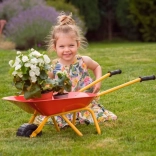 S kolieskom deti môžu ľahko prepravovať rastliny, zeminu alebo malé záhradné nástroje. Podporuje schopnosť spolupráce a zodpovednosť pri starostlivosti o záhradu.