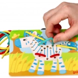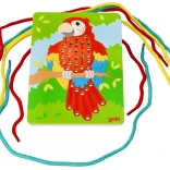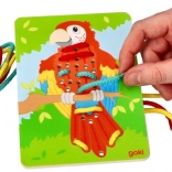 Rozvíjajte jemnú motoriku a koncentráciu vášho dieťaťa s drevenými prevliekacími hračkami v tvare papagája, leva a zebry od značky Goki. Tieto hračky sú vyrobené z dreva, čo zaisťuje ich odolnosť a jednoduchšiu manipuláciu pre deti. Balenie obsahuje tri obrázky a farebné šnúrky pre kreatívnu zábavu.