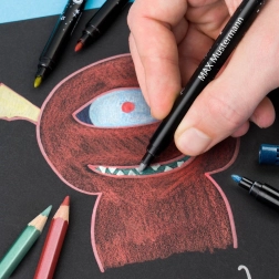 Kombinácia presných liniek fixky a hladkého tieňovania pastelkou vám dá slobodu tvoriť – od detailov po plné plochy.