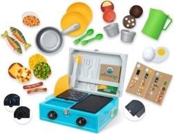 Detská hračka táborová sada s kuchynkou prináša do hry detí neobmedzené možnosti pre imagináciu a zábavu. Tento set obsahuje rôzne komponenty, vrátane hračiek riadu a jedla, ktoré sú uložené v prenosnom boxe, a tak je ideálny pre hranie vonku na pikniku.