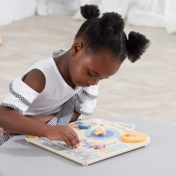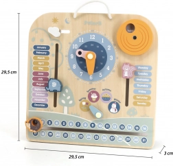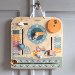 Drevený kalendár a hodiny PolarB Montessori je perfektnou kombináciou hry a učenia. Pomáha deťom naučiť sa rozpoznávať čas a dni v týždni, učiť sa ročné obdobia a počasie s pomocou interaktívnych prvkov.