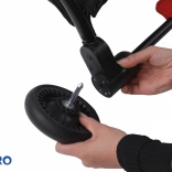 - Komfort pre dieťa – dlhá strieška, nastaviteľný podnožník, odpruženie kolies.