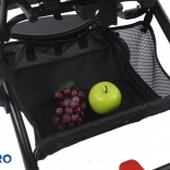 - Bezpečnosť – 5-bodové pásy, odnímateľné madlo s otočením o 360°, zadná brzda.