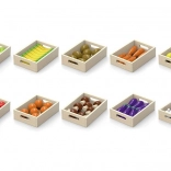 - - súprava obsahuje 10 krabičiek s 10 typmi ovocia a zeleniny: hrušky, pomaranče, kiwi, mrkva, huby, citróny, jablká, cesnak, baklažány a banány,