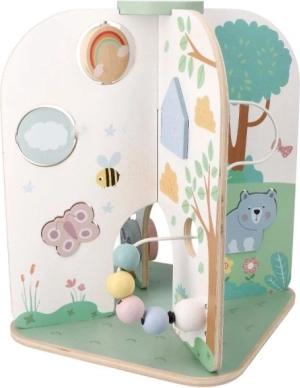 Užite si zábavu s dreveným centrom aktivít, ktoré je ideálnym darčekom pre deti od 18 mesiacov. Táto krásna, veľká a funkčná hračka podporuje rozvoj jemnej motoriky a je vhodná pre imaginatívnu hru.