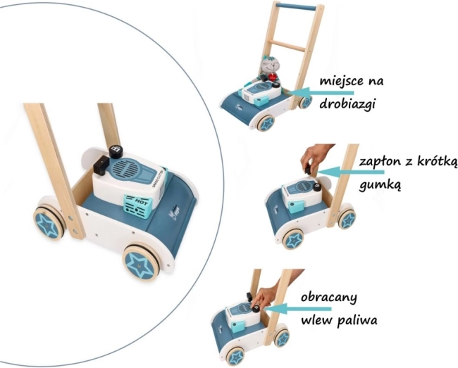 Drevená kosačka so zvukom je ideálnou voľbou pre všetkých malých záhradkárov. Táto hračka je navrhnutá tak, aby pomohla deťom zlepšiť ich koordináciu a rovnováhu. Napriek tomu, že podporuje chôdzu, nie je určená ako tradičná chodítko pre učenie prvých krokov.