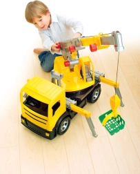 Robustný plastový autožeriav pre malých staviteľov ponúka realistické funkcie a veľkú dávku zábavy. Má dĺžku 70 cm a po vysunutí dosahuje až 115 cm. Vďaka 4 výsuvným stabilizačným nohám, otáčaniu ramena o 270°, funkčnému navijaku s hákom a mechanickému ovládaniu ramena si deti užijú autentickú stavebnú hru a rozvoj jemnej motoriky.