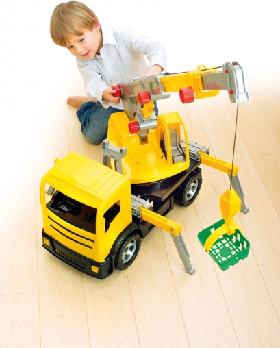 Tento plne mechanický autožeriav je skvelou voľbou pre deti, ktoré milujú stavby a techniku. Veľké prevedenie s dĺžkou 70 cm a teleskopické rameno s dosahom až 115 cm zaručujú pôsobivý dojem aj široké možnosti hry. Otočná základňa s rozsahom 270° a funkčný navijak s lankom a hákom prinášajú realistické zdvíhanie a spúšťanie nákladu.