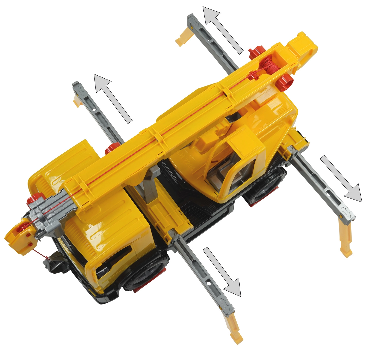 Rameno je otočné o 270° a navijak s lankom a hákom zabezpečuje realistické zdvíhanie a spúšťanie.