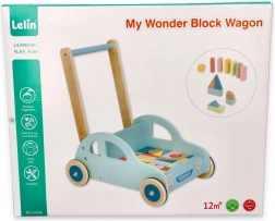 Štýlové drevené chodítko s kockami LELIN v podobe autíčka podporí prvé krôčiky, rozvíja motoriku a ponúka množstvo tvorivej zábavy. Vyrobené z lakovaného dreva, so stabilnou konštrukciou a gumovými kolieskami pre tichý a istý chod. Súčasťou sú farebné kocky, rozmery 46 × 32 × 40 cm, od 12 mesiacov, CE.