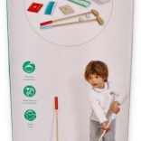 Všetko potrebné v jednom balení: palice, loptičky, ciele a bodovacia karta. Stačí rozložiť, postaviť dráhu a hrať – doma aj v škôlke.