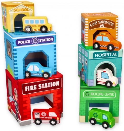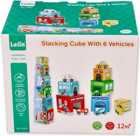 Táto kreatívna pyramída z kelímkov s vozidlami ponúka deťom nekonečné možnosti hry – od stavania vysokej veže až po vkladanie kelímkov do seba. Každý diel je farebný a ľahko uchopiteľný, čo rozvíja motorické zručnosti a podporuje logické myslenie.